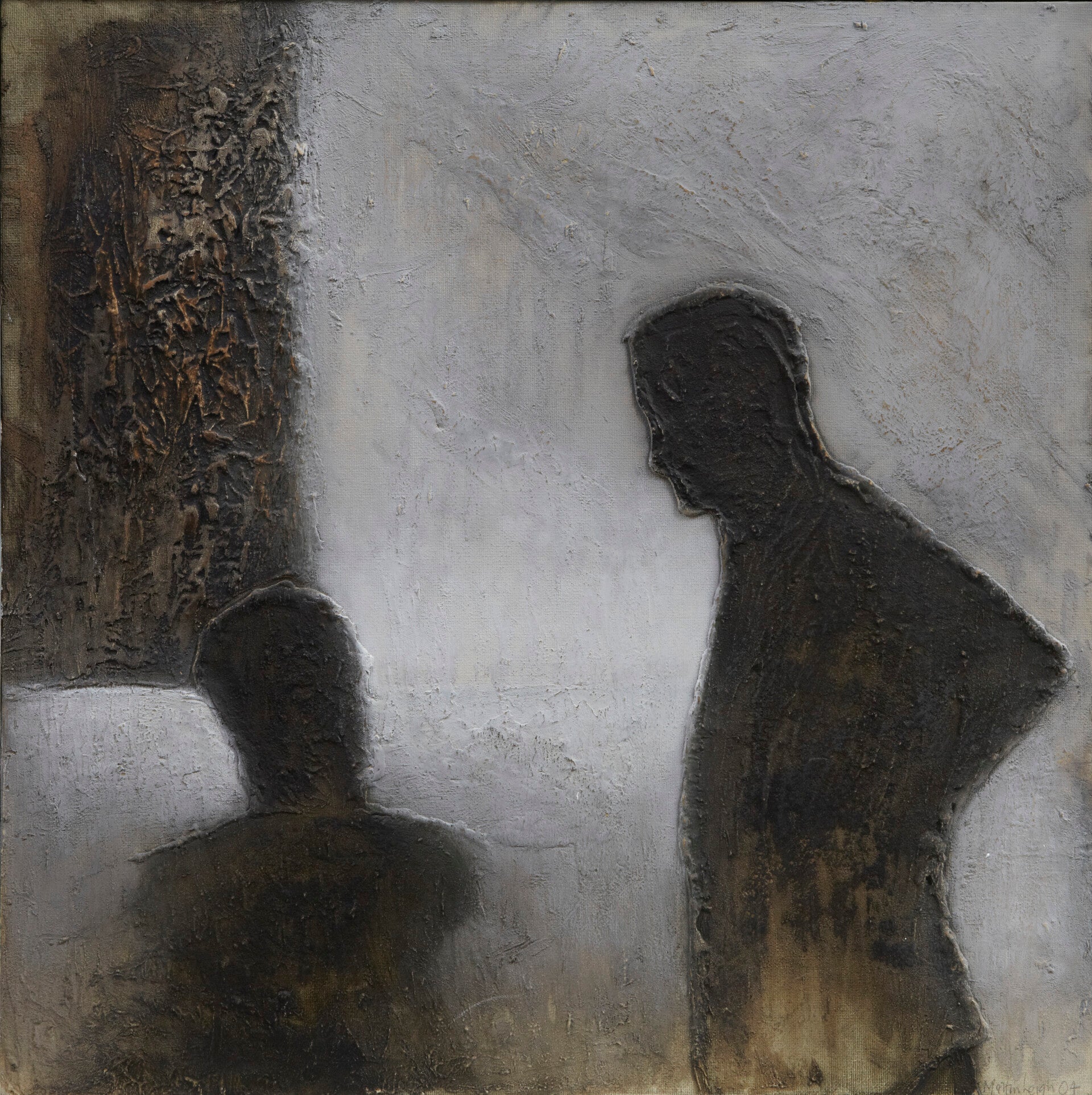 Using artist plaster to enhance the relief of the corrosion and using loose but identifiable brush strokes to convey the loss of symmetry.